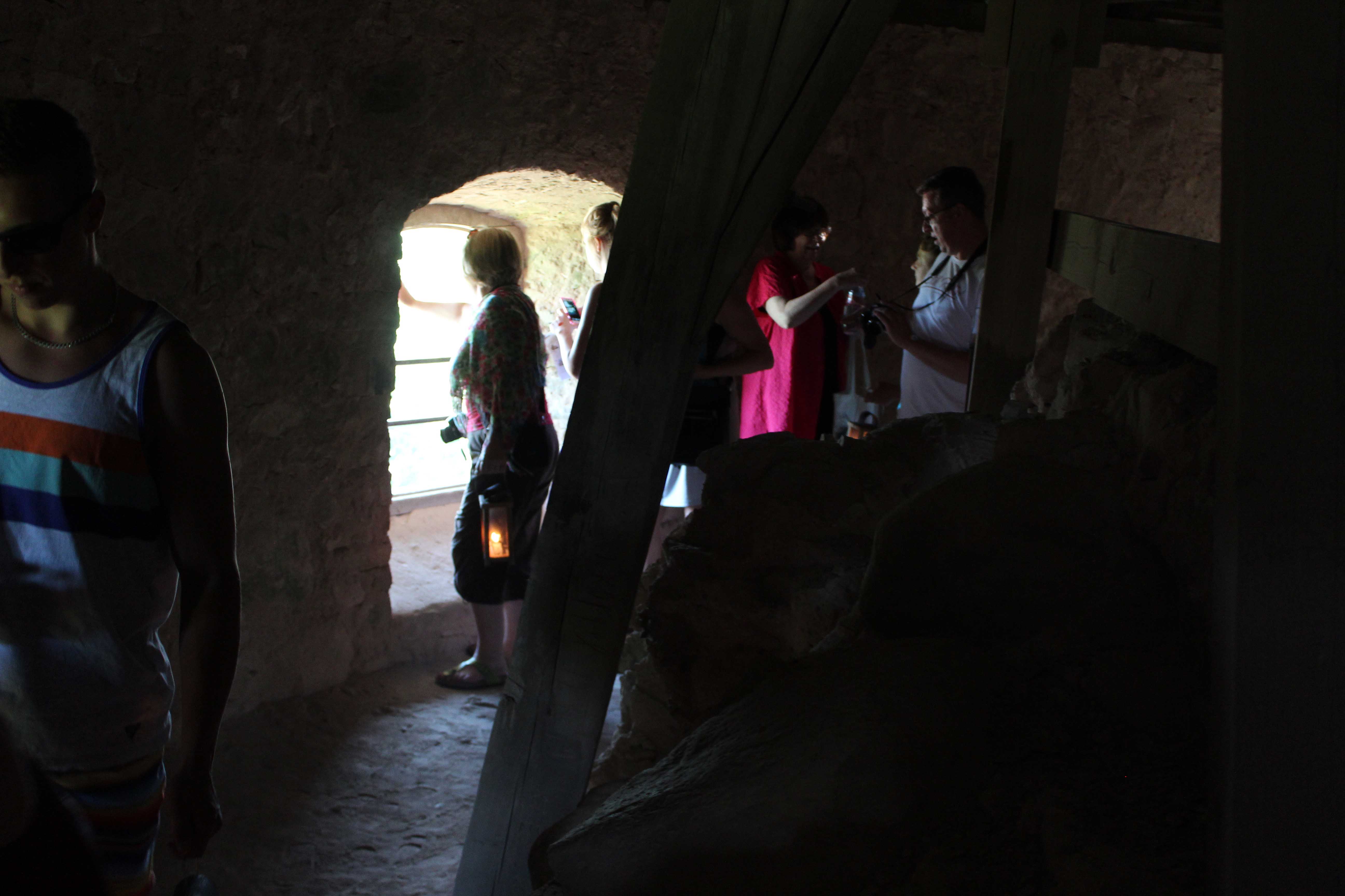 To visit the western tower of this same castle, visitors are given candle lanterns, as there are no electric lights – just steep, narrow, black winding staircases in the tower walls, with visitors clambering up and down the worn stairs clutching guttering candles. Lovely effect.