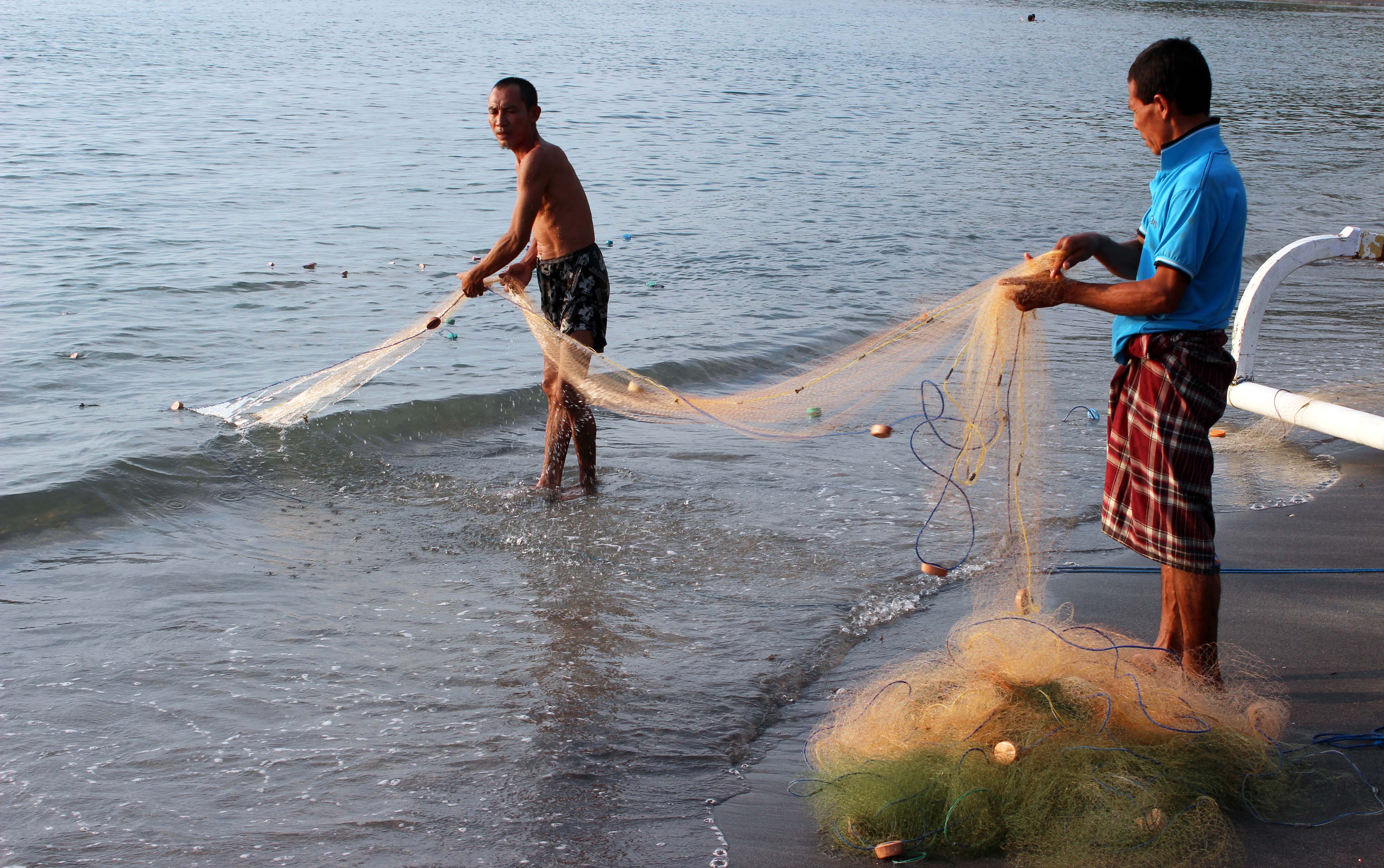 Evening scenes along the beaches included kids using red plastic buckets to gather crabs and small fish, fishermen checking and hauling in their nets, grandfathers giving tiny granddaughters their evening baths in the warm shallow waters, and a young girl puffing on the embers of dried cocoanut husk until it glowed red enough for her to cook the sea urchin she had been guarding from other kids.