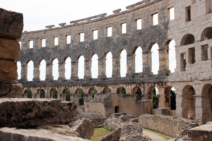 Pula is possibly famous for many things – it has a huge ship-building yard, magnificent plane tree-lined streets, an ancient cathedral with its slightly tipsy free-standing campanile – but it is probably most famous for the superb Roman amphitheatre dating from the first century AD during the reign of Emperor Vespasian.