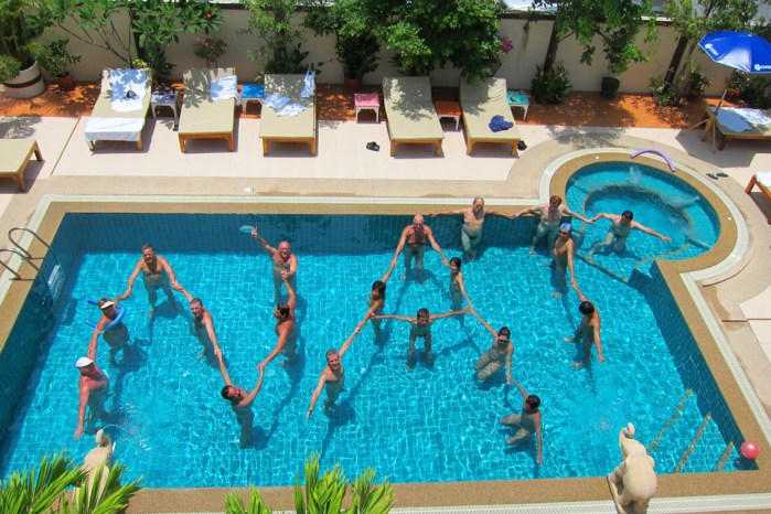 In total, I had about a week of lolling naked by the pool, quaffing naked bacon and tomato sandwiches for breakfast, enjoying naked massages, riding my bicycle to the beach where I could strip off my shorts and quietly swim au naturel in the sea … and go for (fully clothed) morning jogs and tumbles with bloody elbows, bloody knees, bruised hips and bruised egos as I discovered that Thai footpaths are not really jogger-friendly …