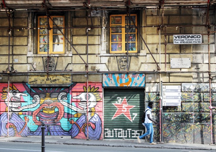 A morning stroll along the heavily graffitied Piazza della Commenda to Vie di Pré showed that for every three people on those mean streets two were Africans (from Morocco or Sudan) and of the others about half were Pakistanis or Indians. Paganini and the Pope did not get much of a look in.