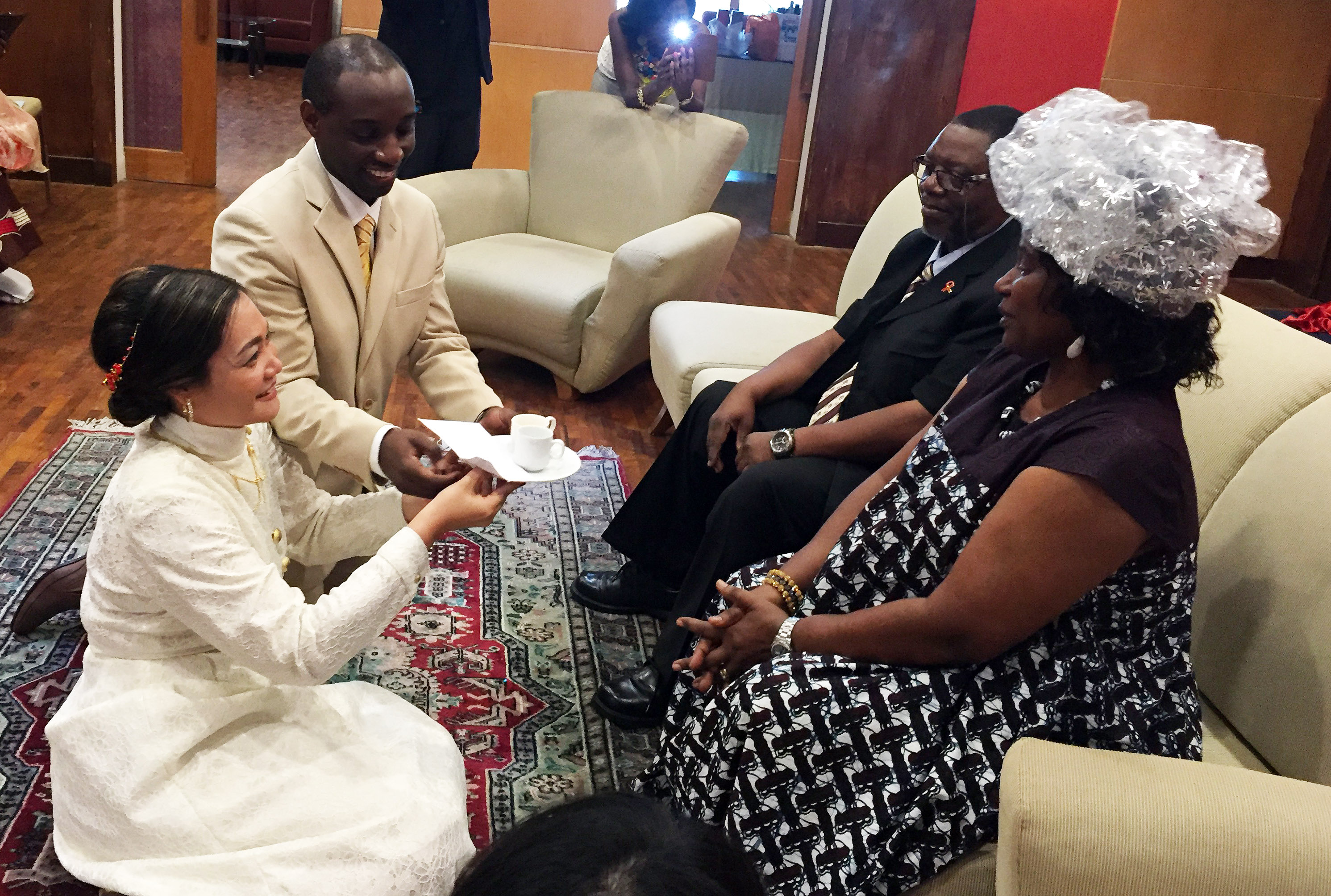 Family members passed Anocha and Mtheto tiny ceramic cups of tea poured from a Thermos flask.