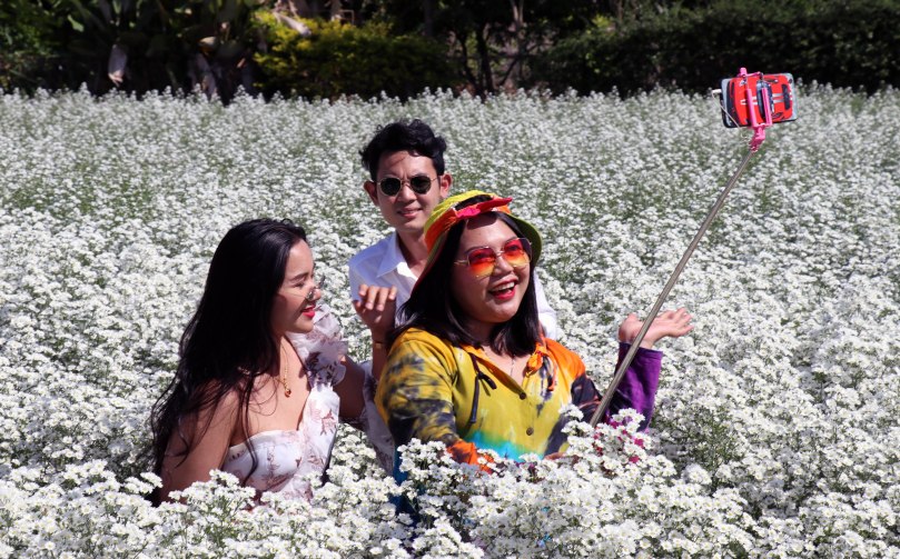 - And people keep taking selfies amid the flowers