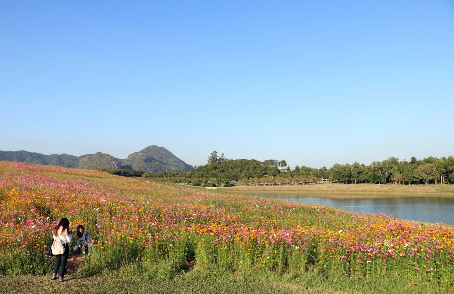 This is the time when days are crisp and sunny, the air is sparkling clean like a newly-popped bottle of Veuve Clicquot, and when the many flower farms and parks are at their best. If you travel to the Central Thailand province of Lop Buri during this time you will see hundreds of thousands of hectares of sunflowers tossing their heads in the autumn winds and turning their faces to the southerly suns.