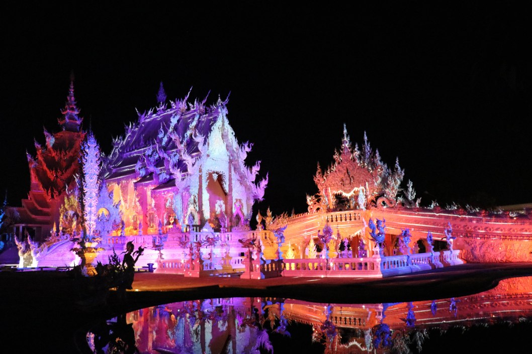 Many years ago I saw a great son et lumière presentation in the Temple of Karnak at Luxor, and in Warsaw I saw a production of Mozart’s The Magic Flute where all the scenery was projected onto the courtyard walls of King Jan lll Sobieski’s palace. Technology has moved on – and the effects in the Wat Rong Khun light festival surpassed anything I have seen.