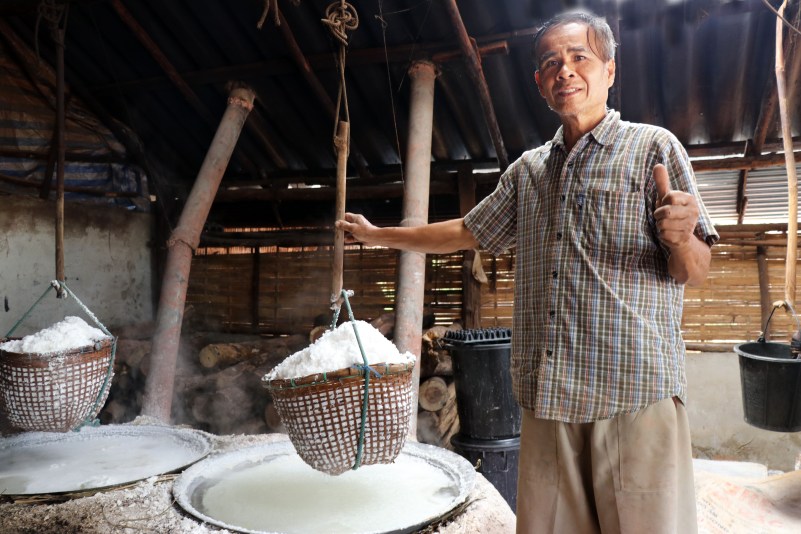 A centuries-old well in the heart of Bo Kluea draws naturally salty waters from some deep subterranean stream. Curiously, the pretty stream that runs through the village is not salty at all. The well water is placed in shallow bowls over slow fires and stirred and stirred (see image at LEFT) until the waters start to evaporate. The residual salt is then scooped out, placed in bamboo baskets to dry and then turned into various cosmetic facial scrubs, domestic table salts and a myriad of other local products. I had some sensational roast chicken from a street stall, but the more I ate, the saltiness proved to be too much and the original sensation of WOW turned into a sensation of PHEW.