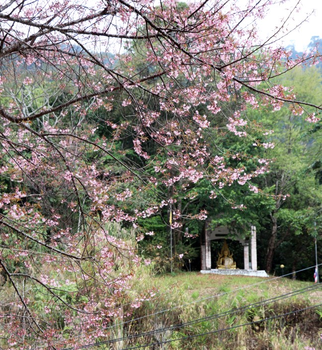 In places, the road is just a thin strip of black satin ribbon frivolously draped across the very top of sharp ridges with deep valleys falling away on either side. At times the road becomes quite gay as scarlet flags planted at the roadside provide a splash of vermillion against the deep green forest to tell drivers that a particularly nasty curve is coming up. In the Phu Kah National Park, if you time your visit well, the forests are studded with superb pink flowering trees – Chompoo Phu Kha – which are quite a glorious sight if you are brave enough to take your eyes off the road ahead.