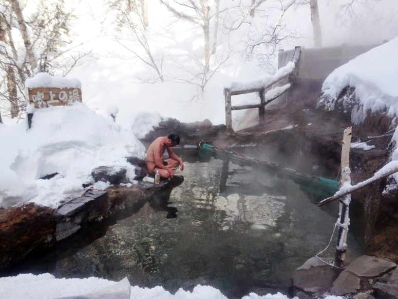 Although there are many Japanese open-air onsens where the hot tub + snow on head is possible, the diving into a heap of fresh snow may perhaps be more frequently found in Scandinavian countries where a steaming sauna and a few bashes with a birch branch can easily be followed by a roll in the snow.