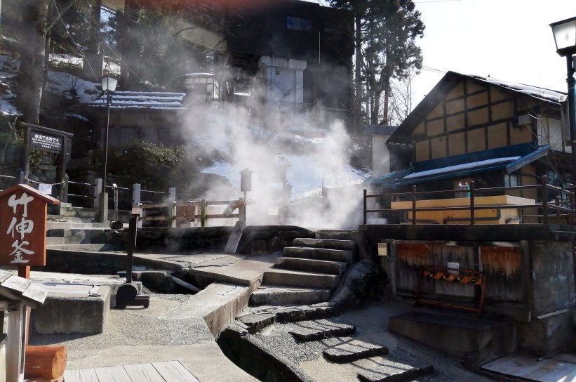Traditionally, the steamed buns were cooked using waters from the hot springs that feed the many onsens. Perhaps they still are, but the people streaming to the many onsens are certainly still steamed by the rich mineral waters.