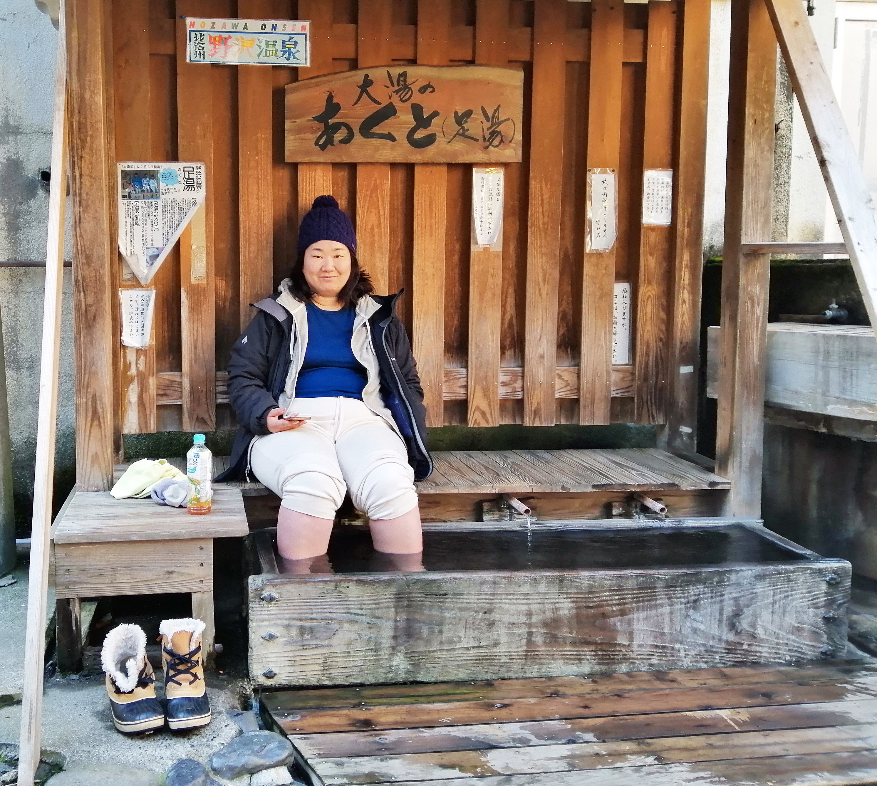 Most of the Nozawa onsens are in beautiful old timber structures that recall the architecture of Japan’s Edo Period (1603 – 1869) but some are just simple concrete and granite boxes with a steaming tub or two. My favourites included the beautiful O-Yu with its two bathing pools, one of which was VERY HOT and another that was just HOT. Over the road there is a footbath where travellers can sit and soak their tired feet.
