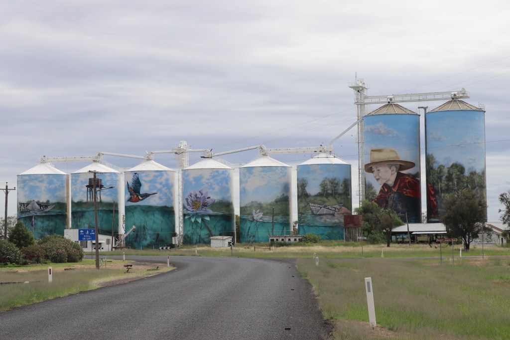 In those days, Texas was a centre for tobacco production but there did not seem to be any tobacco in the fields when I drove by on the way to Yelarbon – the first place in Queensland to grow tobacco, and now perhaps more widely known for the superb painted silos that jut out above the flat flood plains.