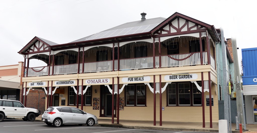 Another pub – O’Mara’s Hotel – was my home for one night on this journey. This 1910 double-storeyed place replaced an 1873 pub that burned down. It is a grand old place – but with its timber floorboards, its thin tongue-and-groove timber walls and its timber veranda floorboards it is a very noisy place – especially on a brisk Saturday evening when revellers revel until the early hours of the morning.