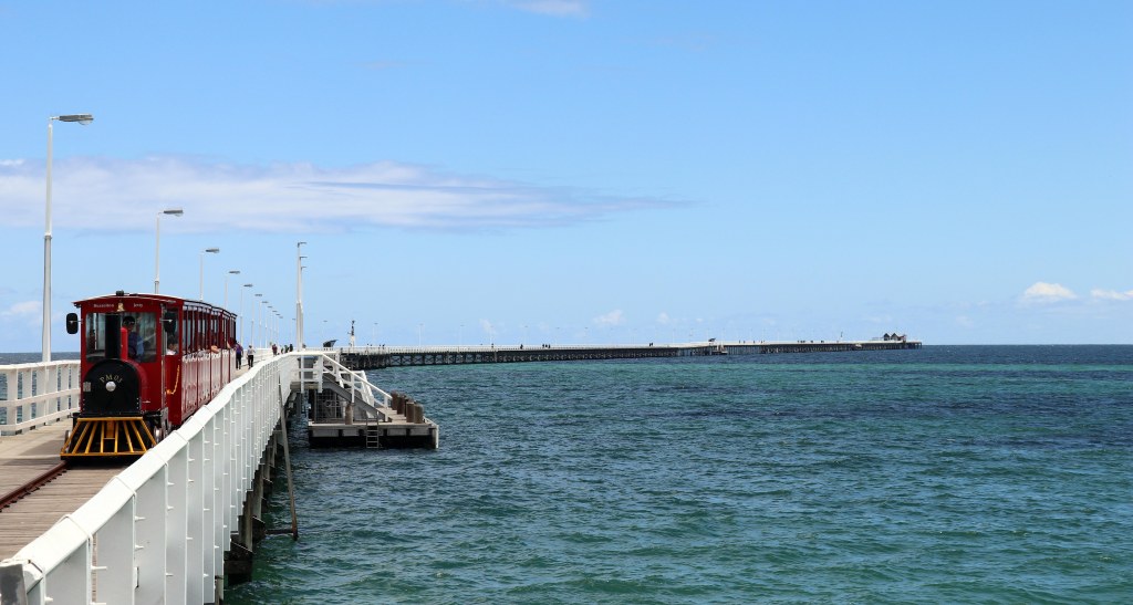 Dating back to 1864, long before Hua Hin became a popular destination for royal and non-royal Thais, is Western Australia’s Busselton Pier, site of one of the world’s shortest train journeys.  The pier is just under two kilometres long – but is the longest timber-piled jetty in the southern hemisphere.  A pretty little toy train shudders along the piers to ferry anglers and visitors from the terminal to the far end where they can toss a line into the sea.