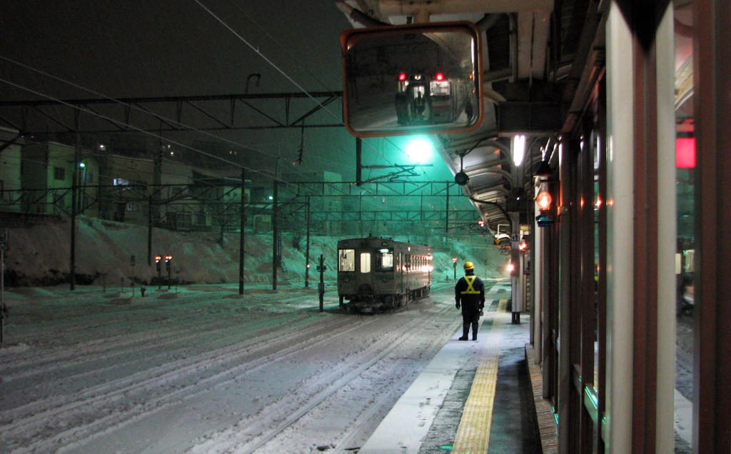 The winter train from Japan’s Sapporo to Otaru carves its way through deep snow-covered fields with scarlet Torii gates suddenly popping up through the white winter landscape, and at night time, the train stops at several small stations en route where the image of dim lights, snow-covered tracks and pinpricks of red somehow reminded me of scenes from Doctor Zhivago.