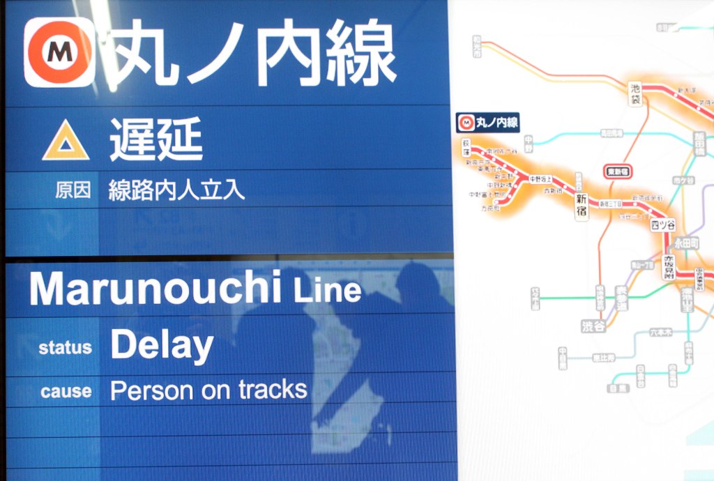 • In the UK train delays are infamous in autumn because of “leaves on the rails”.  Surely someone could invent a blower or a scraper to remove dead leaves?  In Germany my train was delayed for an hour because of a fallen tree on the rails and in Japan I noticed that there was a delayed train because there was a body on the rails:  seppuku by train?