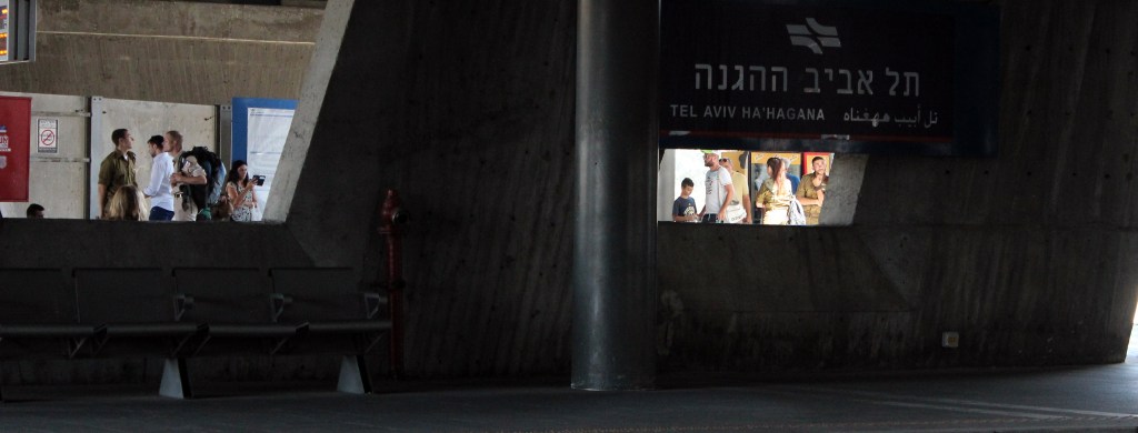 Passengers waiting at Tel Aviv’s Ha’Hagana station