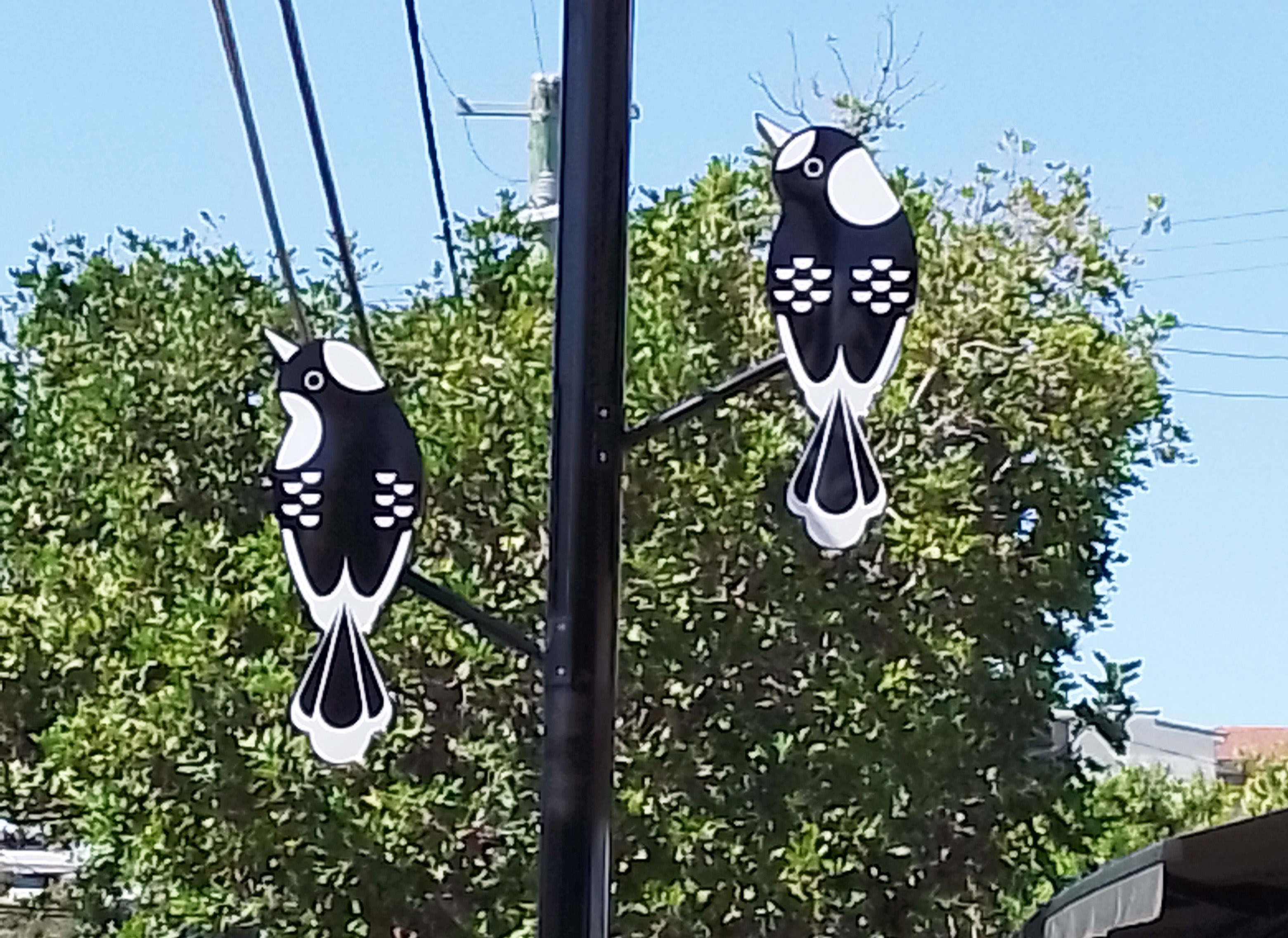 The village name comes from a Turrubal word meaning “place of the magpie lark”, which explains why the streetlamps in modern Bulimba are decorated with stylised cut-out magpies, a protected native species.