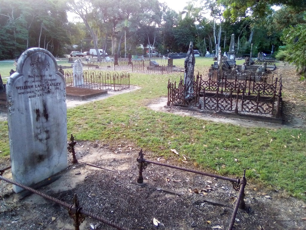 There is a luscious emerald-green golf course just out of town – part of the Mirage Resort I think – and just over the road is the rather run down and tired local cemetery:  a lovely juxtaposition!  I can imagine some oldies retiring to Port Douglas, eating superb steaks at the Ironbar, playing golf at the Mirage … then turning up their toes, crossing the road and spending the next few years lying beside William “Billy” Thomson in the Pioneer Cemetery.