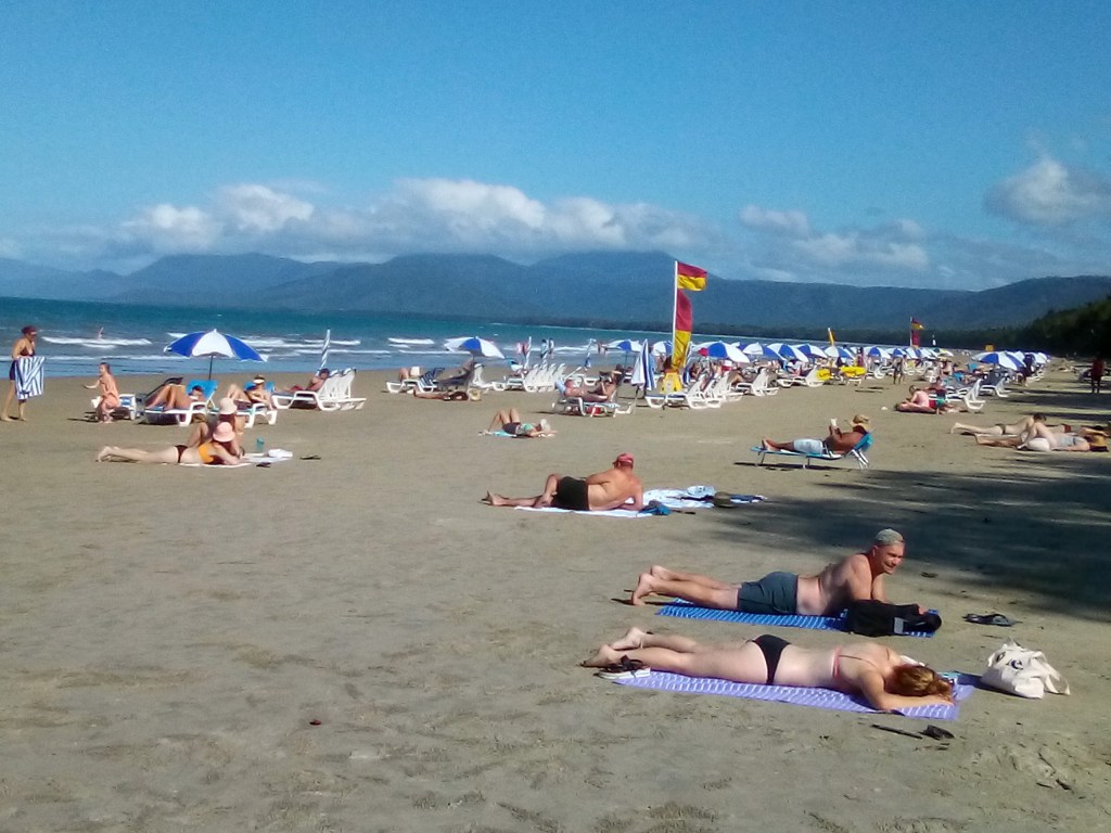 I travelled in July – the middle of Australia’s winter – and was safe from swooping birds, Irukandjis and ocean-going crocodiles as I pottered through Trinity Beach and its magnificent marina, Clifton Beach and on to the lovely and quiet and child-friendly Palm Cove.  I swam every day in the sea – usually only me and one or two others – and much to the concern of fellow guests at my resort:
