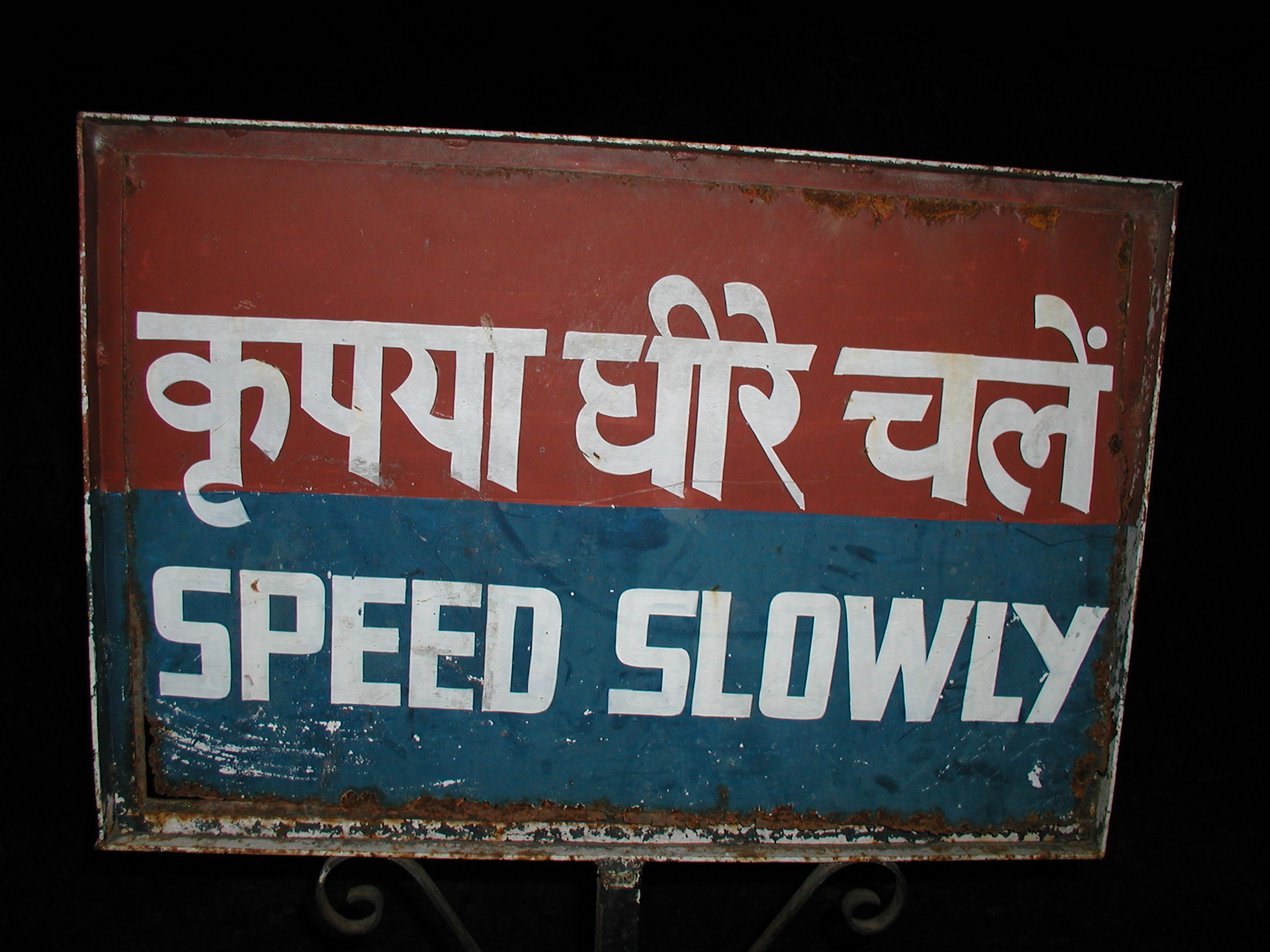 I try not to find amusing examples of English when I travel in strange lands as the locals’ command of “my” language is almost certainly always better than my knowledge of the local lingo, but I did enjoy this road sign in India: