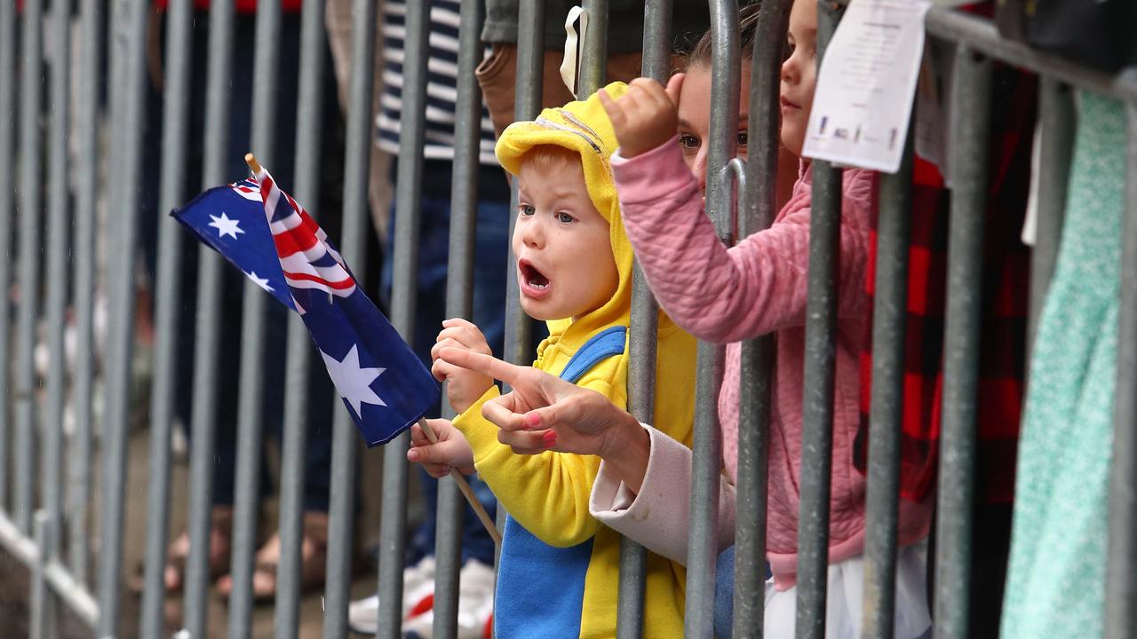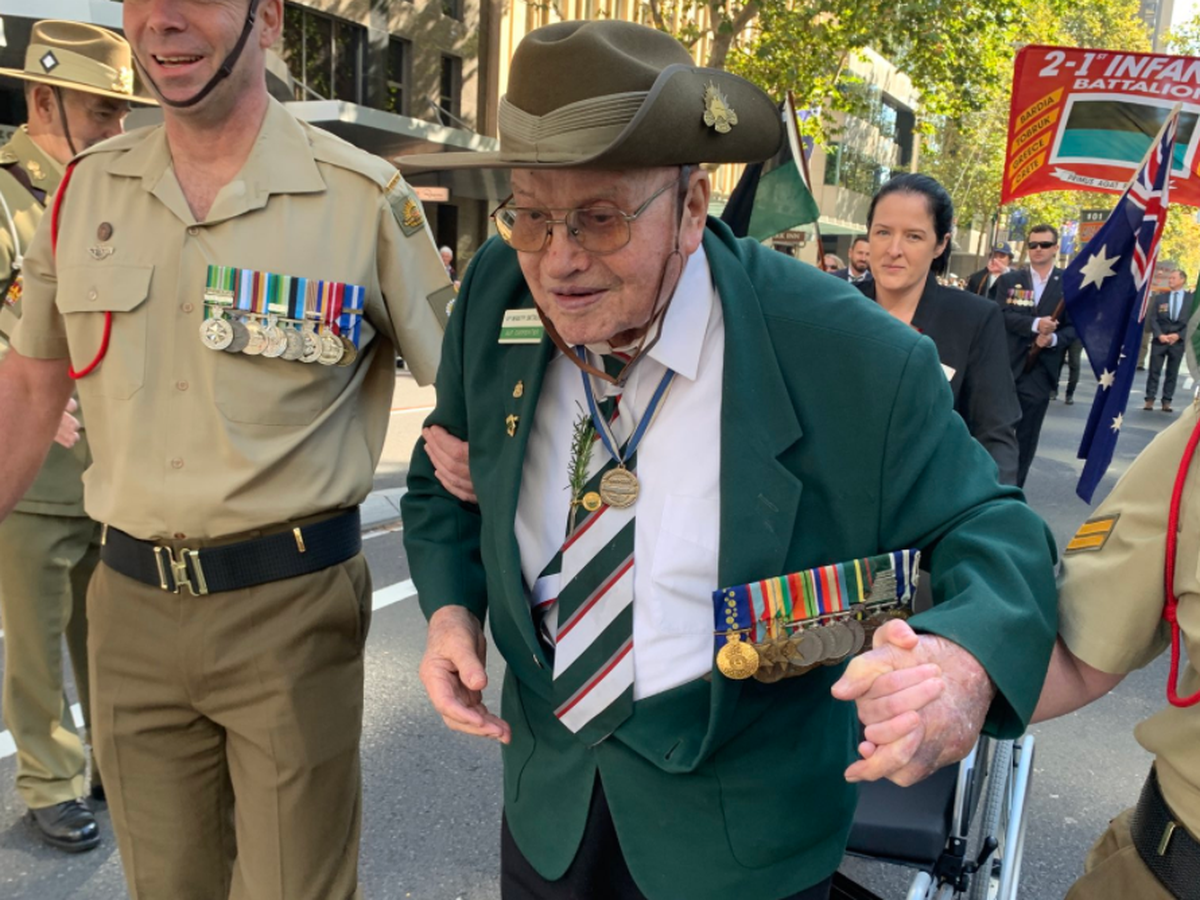 Crowds lining the streets – or peeking between the bars of barriers – waved flags and cheered as they greeted military bands, Aboriginal and Torres Straits soldiers, the Queensland Police Pipe Band, War widows, nurses, mounted troopers, New Zealand and Australian soldiers past and present, one man with a seeing-eye dog, men in period or historic military uniforms … and an old man who proudly but sadly told reporters that he was the only one left from his original military unit.