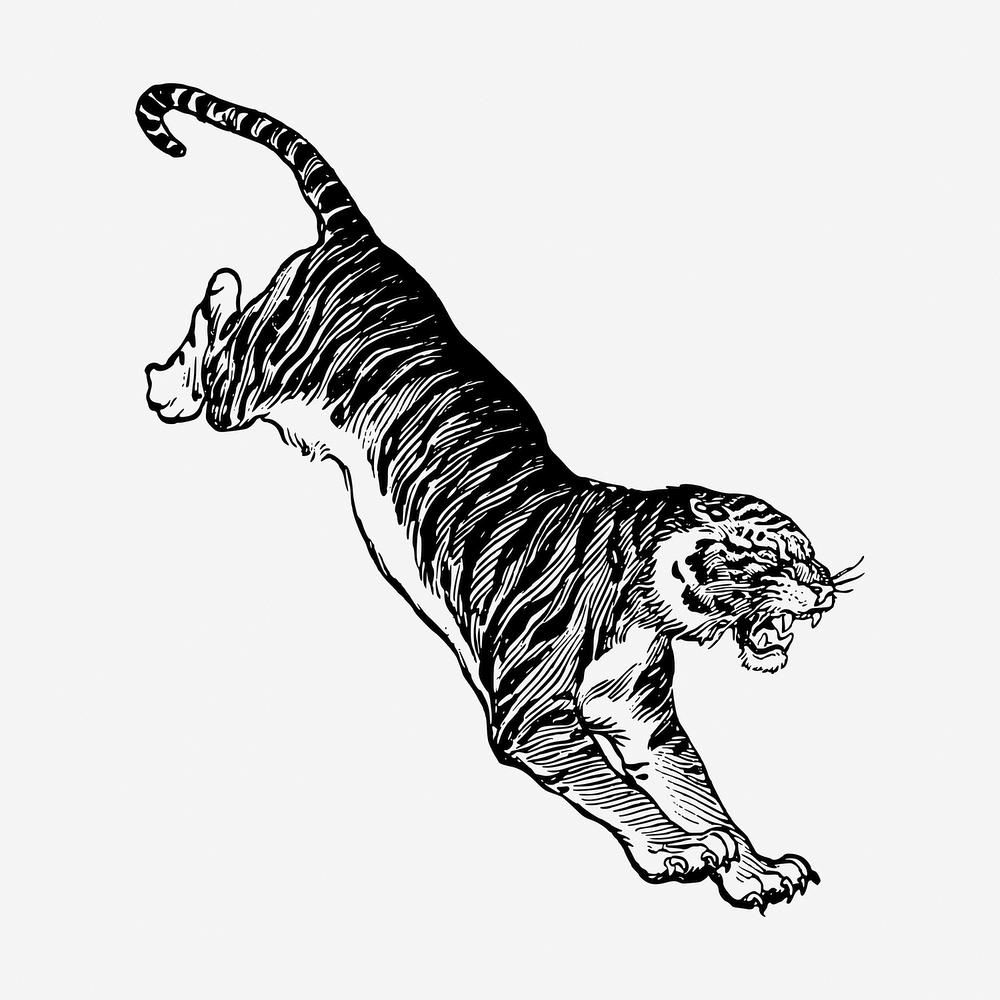 Jumping tiger, vintage animal illustration. Free public domain CC0 graphic