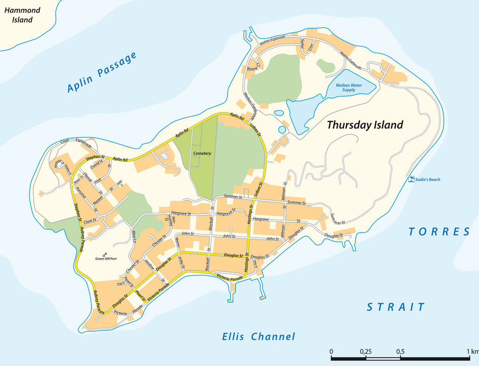 There are about 270 islands scattered between Cape York in Australia and the southern tip of Papua New Guinea, but only seventeen are inhabited. Thursday Island (with about 3000 residents) is the administrative centre for this vast area of 48,000 square kilometres.