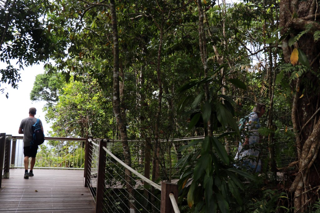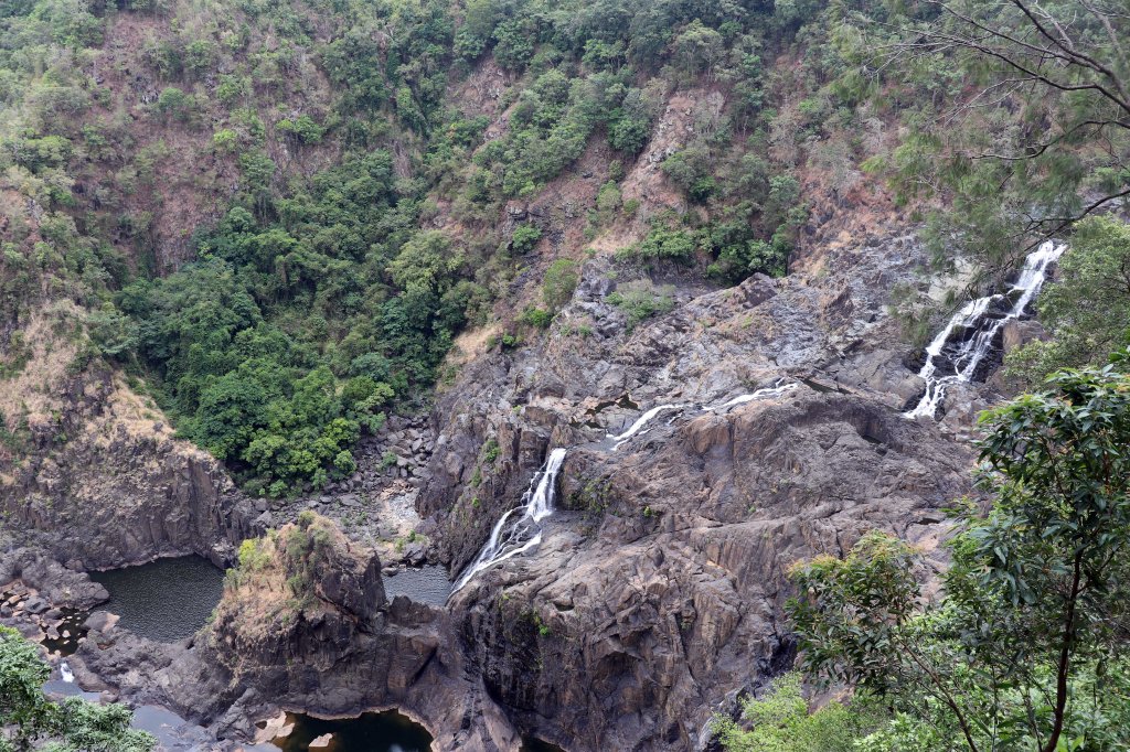 There is a stop en route to Kuranda. Travellers can continue to the top or alight there to explore the 2019-built Edge Lookout rainforest walkway and see the mighty – or the sad – Barron River Falls.