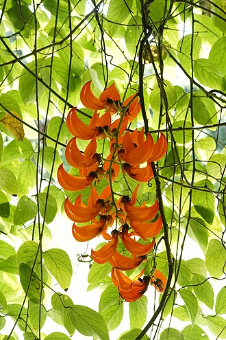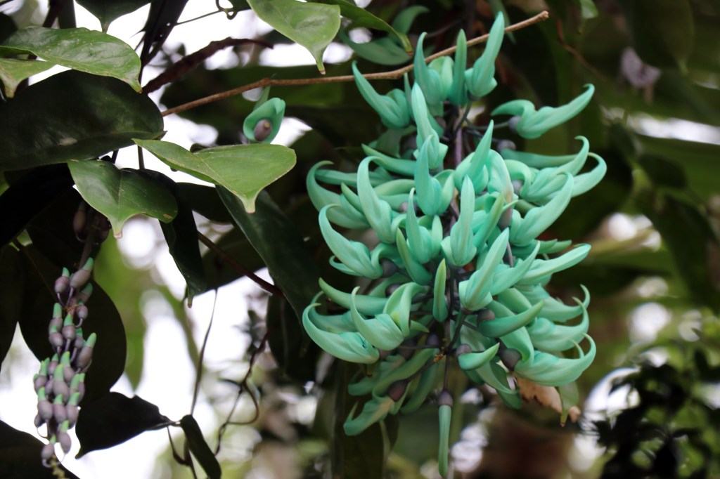 In Thailand we had an almost identical flower, but it was bright golden red. I have now found that the Thai flower’s name is Macuna benettii … or perhaps Novo-Guineensis … but its FNQ cousin is the Flaming Jade … or New Guinea Creeper or Morning Eye Candy or …