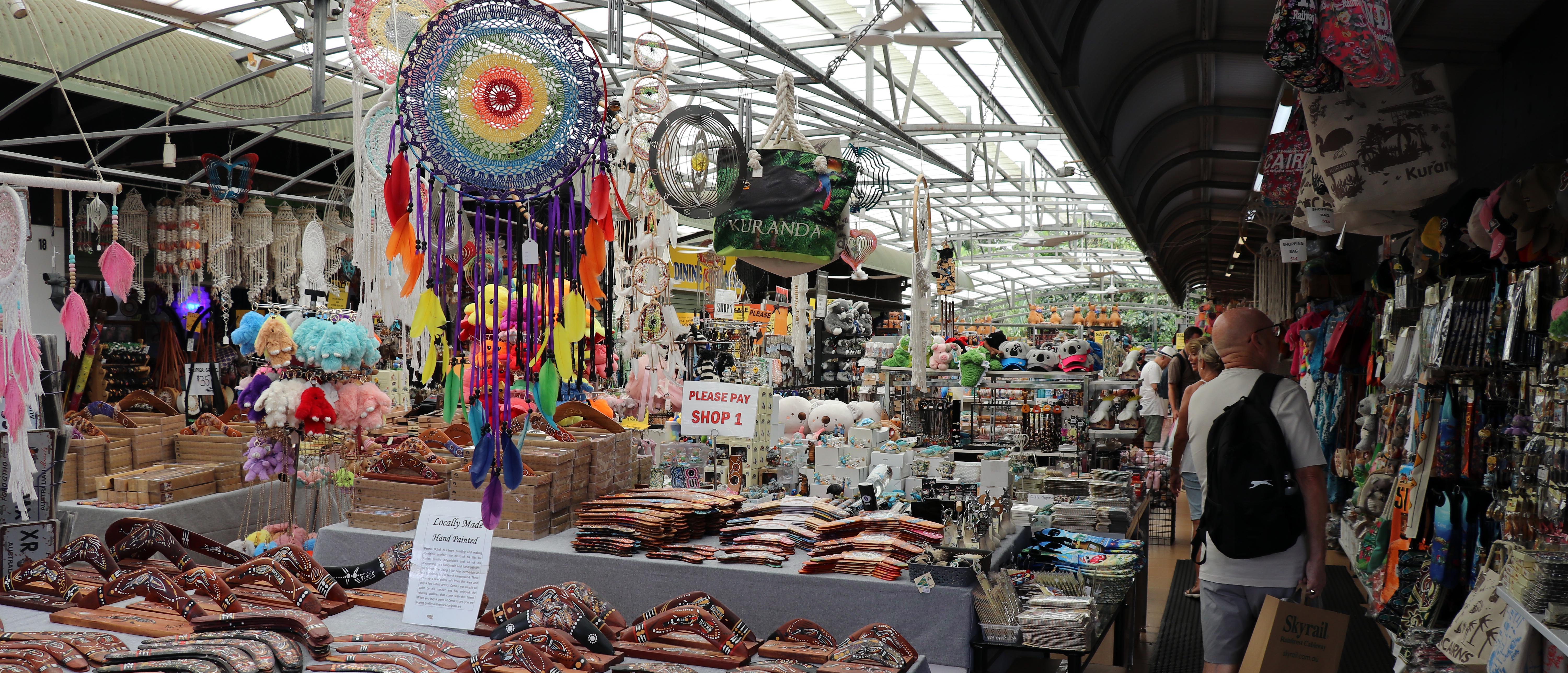 The other – the Kuranda Hotel – was established in 1880 and features a host of antiques as well as outdoor dining options where visitors can chow down on their (quite good) pub food while watching the comings and goings of locals and visitors in the street below or licking ice creams from the local shops or hunting for bargains in the local markets.