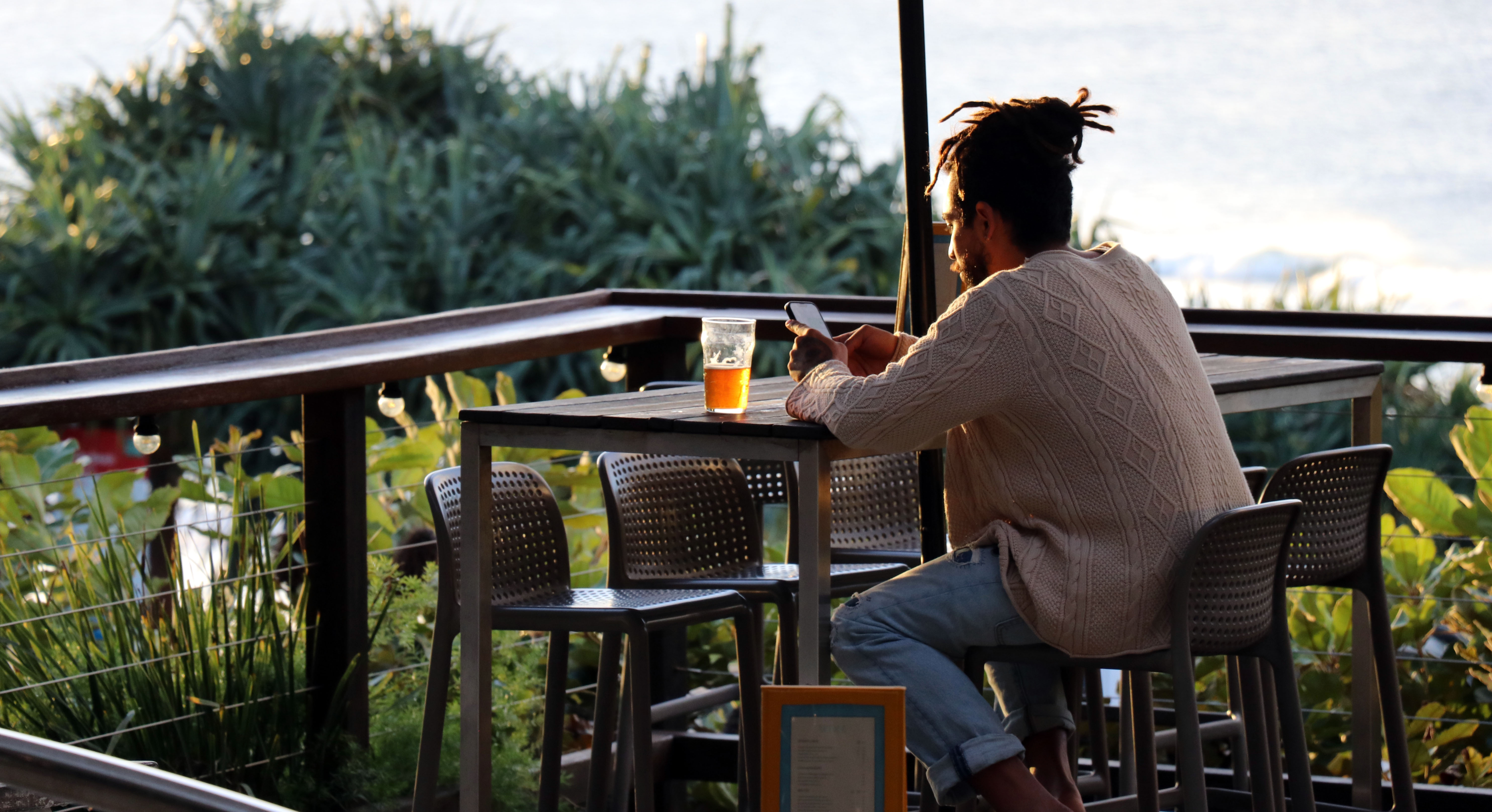 At the Beach Hotel also on Stradbroke I enjoyed a rib-eye fillet with an excellent wild mushroom sauce while watching the sun set over the ocean and lighting up a man with dreadlocks sipping a beer on the balcony.