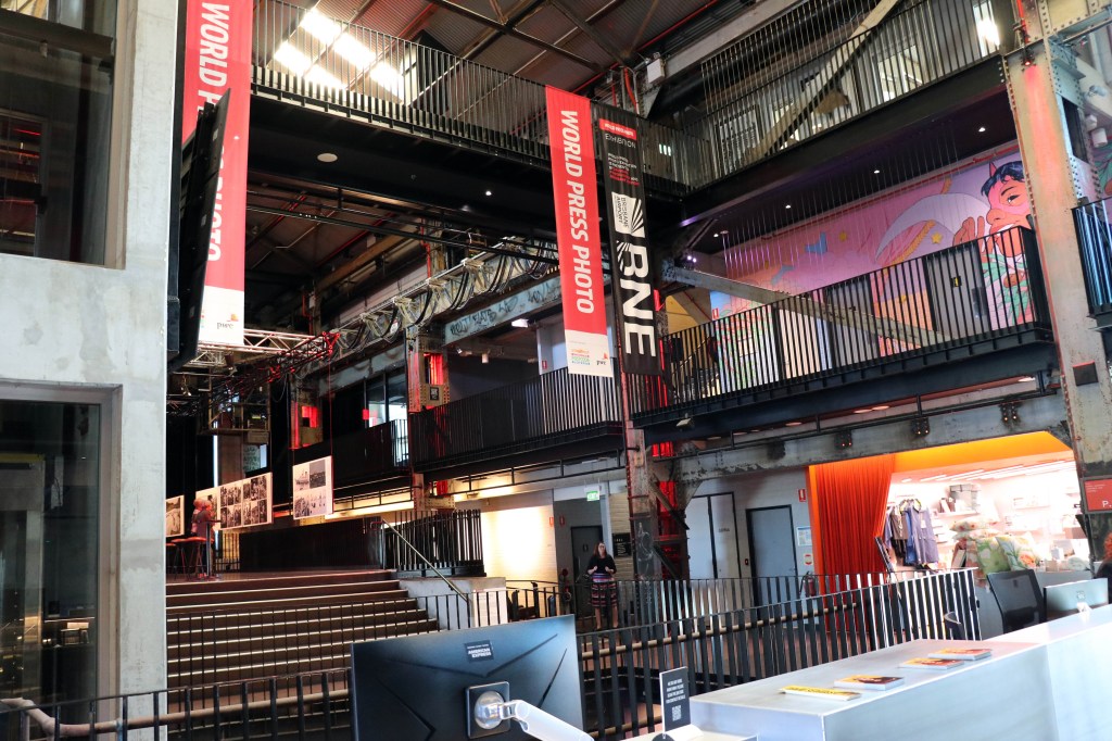 On my last visit the World Press Photo Contest was on display and the forecourts were being used for a glamorous photoshoot. The graffiti is still there, as are many of the old steel beams and exposed brickworks and a few electrical bits and pieces and switches and doovers.